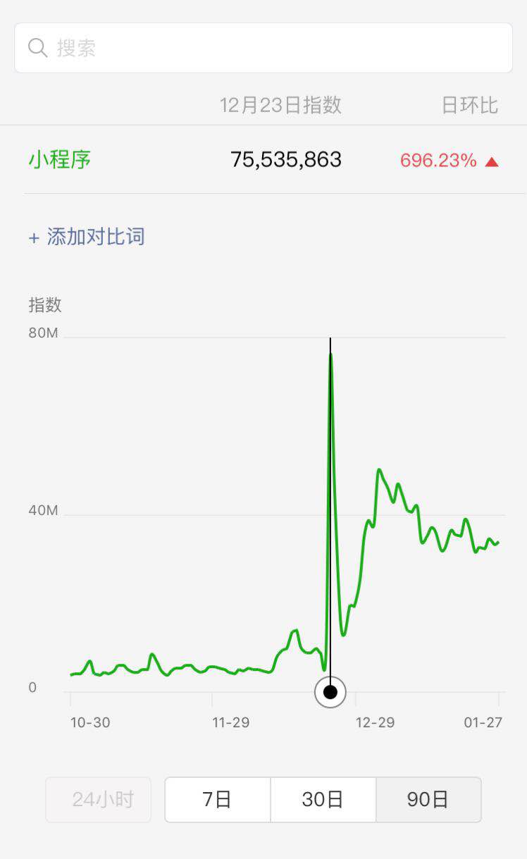 随着圣诞节前后圣诞帽的爆发,以及张小龙第二次站台微信公开课,小程序热度再次爬了个破: