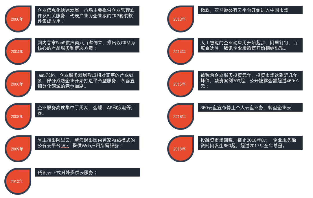 B端产品,面向的都是企业,服务企业;所以首先,我们简单来看一下,企业服务行业的发展历程: