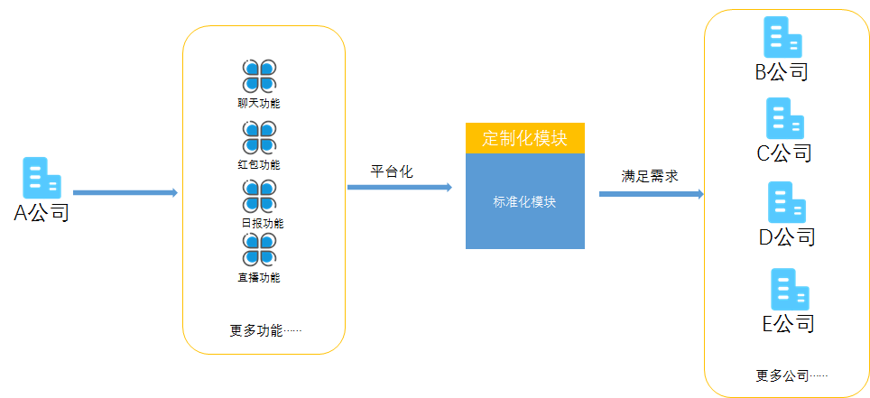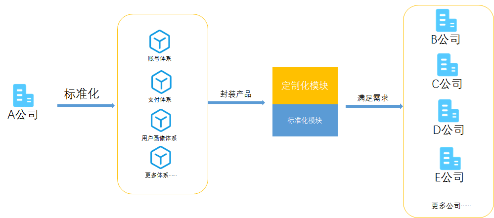 1. 定制化:具备较高的定制化属性,更多的是基于技术或接近方案进行考虑,只为进行资源的整合和拉通,减少重复开发、减少人力成本;